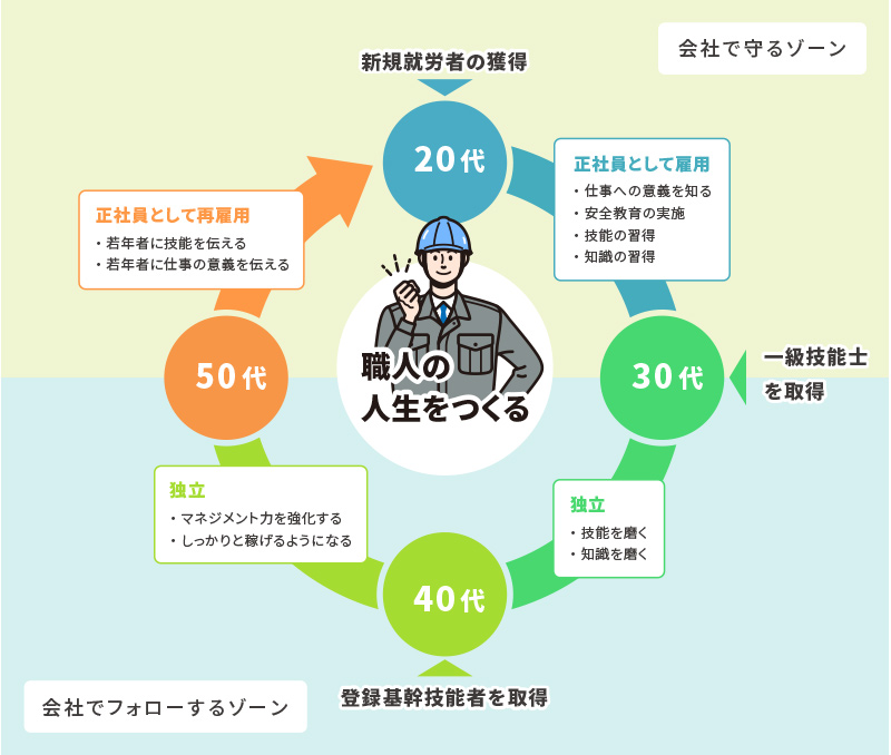 そこで、キャリアプランを考えた。これにより職人も若手も先のビジョンを見据えながらキャリアを積める。まさに『次世代の育成』なのである。